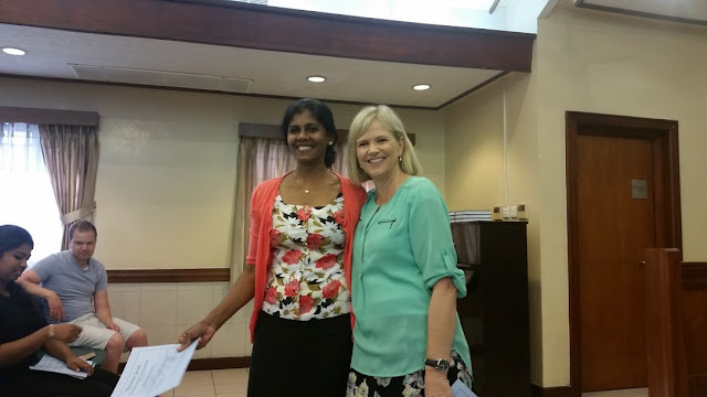 Curt and Erin are here!!!! We are so happy and excited for the week! Wonderful, wonderful week!! We are really feeing the reality of such a little time left on this mission. It is very strange. I taught my last week of piano classes this week. Trying to get everyone ready for the big recital on Saturday! We went to the General Hospital this week for Steve to give a blessing to Nilukas brothers wife from Chilaw. She has been in the hospital for weeks and they have not been able to figure out what is wrong with her. They are thinking now it might be lupus. She just looks miserable. I hope they can begin to help her if they know what it is. Naveen and Inoka invited us to a dinner one evening. They really wanted to take us out! We went to Lani's....right on the beach. It was a nice evening out and we had a great time. They invited Mali and her kids to come too! I have been a little bit nervous lately about getting everything done on the computer. The end of the semester for seminary, starting the new semester, getting all the finances together....just a bunch of things. So....Steve gave me a great gift! We were needing to go to Kandy with the Elders to get their new apartment set up and Steve needing to do a baptism interview. He thought it would be a good idea if he went without me with the elders and I could stay home and work on the computer. It was perfect! He was able to do the interview, buy everything for the apartment, and also visit some members that we have been wanting to visit for awhile! I was able to get all the computer work done! And it took me a long time!! But I had the time to do it so it was great! Friday was a busy day! Shehara came over to get some help with her BYU-Hawaii application. Then, Sister Ajantha and her family wanted us to come to their new house and give a blessing. She made a wonderful meal for us and the elders. It was great being with them! We went straight to the Hagobians to visit with them! Radi made a great meal as well. And then.....she and her mother brought down some gift boxes and wanted me to open them! Radi's mom gave me a beautiful silver bracelet that she made. Then Radi snuk a box into my ice cream bowl! It had a beautiful ring inside. Oh my! I got very emotional. We are going to miss these people so much. We came home and slept a few hours before heading to the airport to get Curt! He made it! And we were so so excited and happy to have them! It was the day of my piano recital and I was nervous! I had 19 people coming to take part! I was hoping to start on time (which is not normal for Sri Lanka)! But I was pleasantly surprised when everyone was pretty close! Sandi did not show up but everyone else did! They were all so nervous! But I was so so proud of them all! They did such a great job! They stood up and introduced themselves and then played their songs. They were wonderful! I gave everyone of them a hymnbook that I had written in for them. Hopefully, many of them will continue playing! We brought ice cream and cones for everyone afterwards! Wonderful evening! We came home and fixed Curt and Erin a chicken dinner...which they were fighting so hard to stay awake for! But they did it! We all went to bed early! This time difference is so hard!! Sunday was another wonderful day! They asked Curt to give a little talk a few minutes before the meeting! I was so proud of him! He did a wonderful job. They asked Steve to talk a little before that! And his talk was amazing. He hates being so emotional but he just can't help it. Everyone loves his talks because he speaks from his heart and by the Spirit. Everyone was so great to Curt and Erin! So friendly and good....as they always are! They really enjoyed our meetings! Lots of visiting after and enjoying the wonderful members! They are the BEST! We had a great pork dinner for lunch and then Curt and Erin have been sleeping some more! We tried to wake Curt but it just is not happening! We are off to our wonderful adventure tomorrow! Many kilometers to travel but lots of fun ahead!