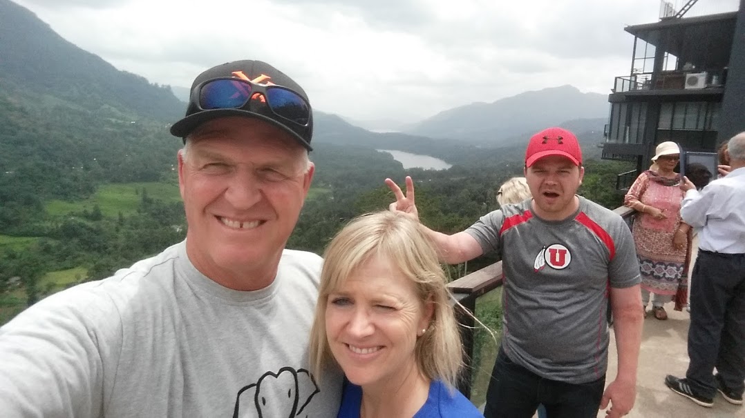 Picture overload this week! Oh wait....that is nothing new! Curt and Erin were here! Yea!!! We are so happy they got here safe and sound! It was the best week! We saw things we had not seen before! We saw new places and beautiful scenery! Sri Lanka is such a magnificent country. It is truly amazing! We love it so much! As the end of our mission draws near, I am getting very emotional! I think I am ready to come home...but then we go to church on Sunday and we see all these people who have become so special to us....and the love you feel for all of them....it will really be tough! Our week flew by! We left early on Monday morning to go across the country to Ella! It was a beautiful drive....pretty windy in many areas....but beautiful! We stayed at 98 Acres! Steve had gone with Pres Nishan to a presentation on them last year....so they got us in....and to the honeymoon suite as well! It was a beautiful place! Little Adams Peak was right out our window! We were on the side of a high mountain and the views were breathtaking! We got situated in the rooms and decided to hike Little Adam's peak. It was not a very hard hike. It was really pretty on the top! You could see in all directions! Curt and Steve had a swim after as we sat by the pool! We had a nice dinner overlooking the area! Such a great and fun place! Erin said she felt like Jane and Tarzan! That night, we got a plate of complimentary fruit and a big piece of cake....on a plate that said....HAPPY WEDDING!!! We got up early and hiked to the 9 arch bridge. It was not a very tough hike either. We had a nice buffet breakfast and then packed up for the next part of our journey! We stopped and saw waterfalls and bought yummy fruit! We stopped at a Hindu temple where a festival was going on. We made it to Nuwara Eliya...so cool and nice!! Steve and Curt decided to go golfing! They had a beautiful golf course here! So well kept and nice! They did 10 holes! Erin and I went down into a garden down the road which was so pretty! People sure stare at the white people! We went to some shops and then found the golfers and walked with them! They had their own caddies and guys that will look for your ball! We found our hotel....the Ferncliff! It only had 4 rooms. It was very old and fun! Had a nice dinner there! We left very early so the hotel packed us a breakfast! We wanted to go to Worlds End! It is a 7 1/2 km walk. It was very foggy as we drove but it ended up being a beautiful day! The views are spectacular! And the journey through the tea fields and gardens is so amazing! We traveled to Kandy that afternoon! We saw the church, did some shopping, and went to the Temple of the Tooth. Our hotel was the Mandara Reach and it was a Muslim owned hotel so there were a lot of muslims staying there. There was even a red arrow in all the rooms that pointed East! It was a very nice hotel. The dinner and lunch buffets were really great! We had a long journey this day so we headed out about 9. We stopped at the Cave temple in Dambula! Lots of monkeys all around! More hiking but it is a nice place to see! We also found the Sri Lanka restaurant we liked so well in March when the other kids were here. Aniya restaurant! It was yummy! We also found a place that Curt and Erin could ride an elephant. They only had one elephant in the whole town so they limited the time but they still enjoyed it! We then drove to Passekuddah...on the other side of the island! Oh my! It was so so wonderful! The hotel was still under construction. They warned us before we came that we would not have all the amenities available. I emailed Nishan and said we would have the pool. Well, when we got there, our room was not available...nor the pool. BUT.....the offered us a 3 room villa that had it's own plunge pool....so we took it of course! It was AMAZING! It was huge! I don't think anyone had even been in it before. It was on the beach...at a beautiful, huge resort. We could not have afforded such a place if it had been finished! The pool area will be wonderful too! There were only about 12 guests staying in the resort right now. It is going to be great. The staff was so friendly and attentive. We had a wonderful BBQ dinner outside overlooking the beach. It was so good! It was by candle light and everything was Perfect!! We spent Friday on the beach....walking, swimming, relaxing....and eating here and there! We had another candle lit dinner by the beach! This time, it was a Mongolian BBQ where we could choose the meats, veges, sauces, etc that we wanted and then they made it right there. It was my favorite meal of the trip! PLUS...they told us the meal was NO CHARGE that night! Steve and I got up and walked on the beach in the morning, had the breakfast buffet, and then went swimming one last time in the ocean! We came back to the pool for a bit and then got ready to go home. I could have stayed there a week! Really great place! The road home was long! We saw some elephants along the way out in the wild! But we finally made it! We had dinner at Dolce Italia before going to bed! Sunday was an awesome day at church. This is where it is getting hard! All the wonderful people! They asked Erin to bear her testimony and it was really great! She was petrified! But she did such a great job! So sweet and emotional! Hansani gave her first talk too! We had great meetings and great visits with everyone after! Oh how we love these people! We had a nice chicken dinner at home and then enjoyed each other a little longer. Ann and Anton came to visit for a bit and to meet Curt. Then it was time to go to the airport! I am so proud of Curt and Erin! They did so great! I know Erin was worried about coming...and leaving Jack....but they did great! I just love my family! That is the part I am looking forward to the most!!